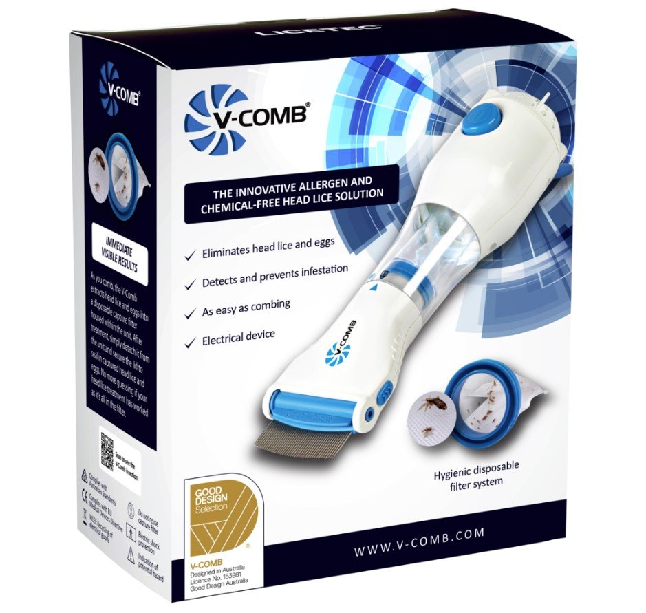V-Comb uklanja vaske i gnjide sa kose tokom češljanja. Usisava vaši i gnjide sa kose i uvlači ih u filter unutar uređaja.