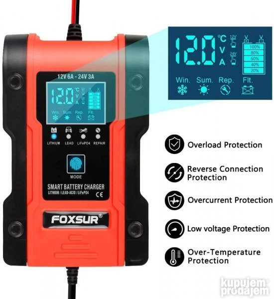 FOXSUR 12-24V AKCIJA Punjac za auto moto akumulator