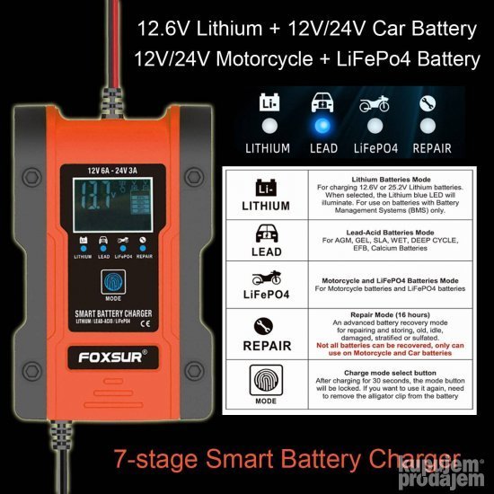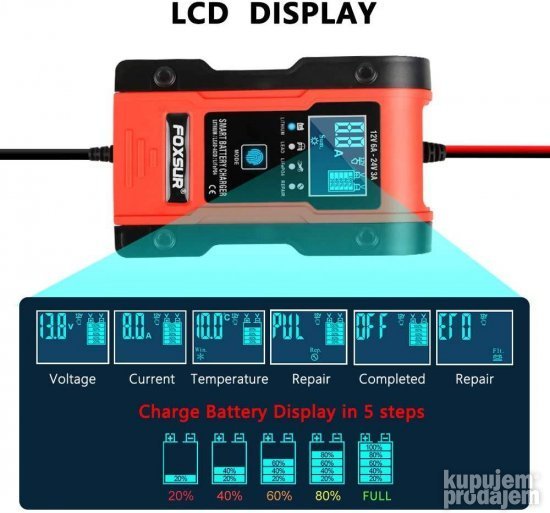 • Ovo je potpuno automatski punjač baterija sa 7 stupnjeva punjenja.