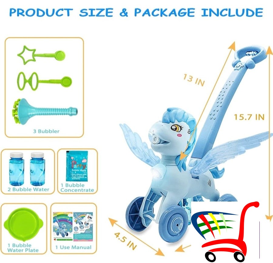 Poni Bubble mašina za decu, automatska kosilica sa svetlom i muzikom Bubble Cart na otvorenom Push igračke za baštu, park, travnjak, rođendan, festival Najbolji poklon za mališane 2 3 4 5-godina
