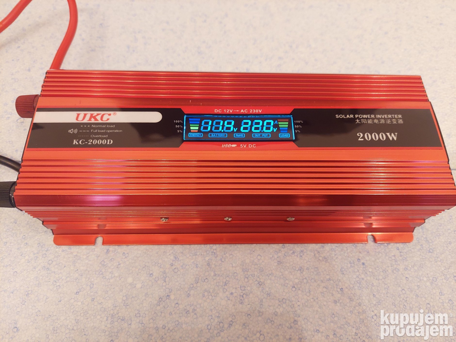 Poseduje ekran za prikazivanje ulaznog i izlaznog napona, preopterecenosti i snage baterije.