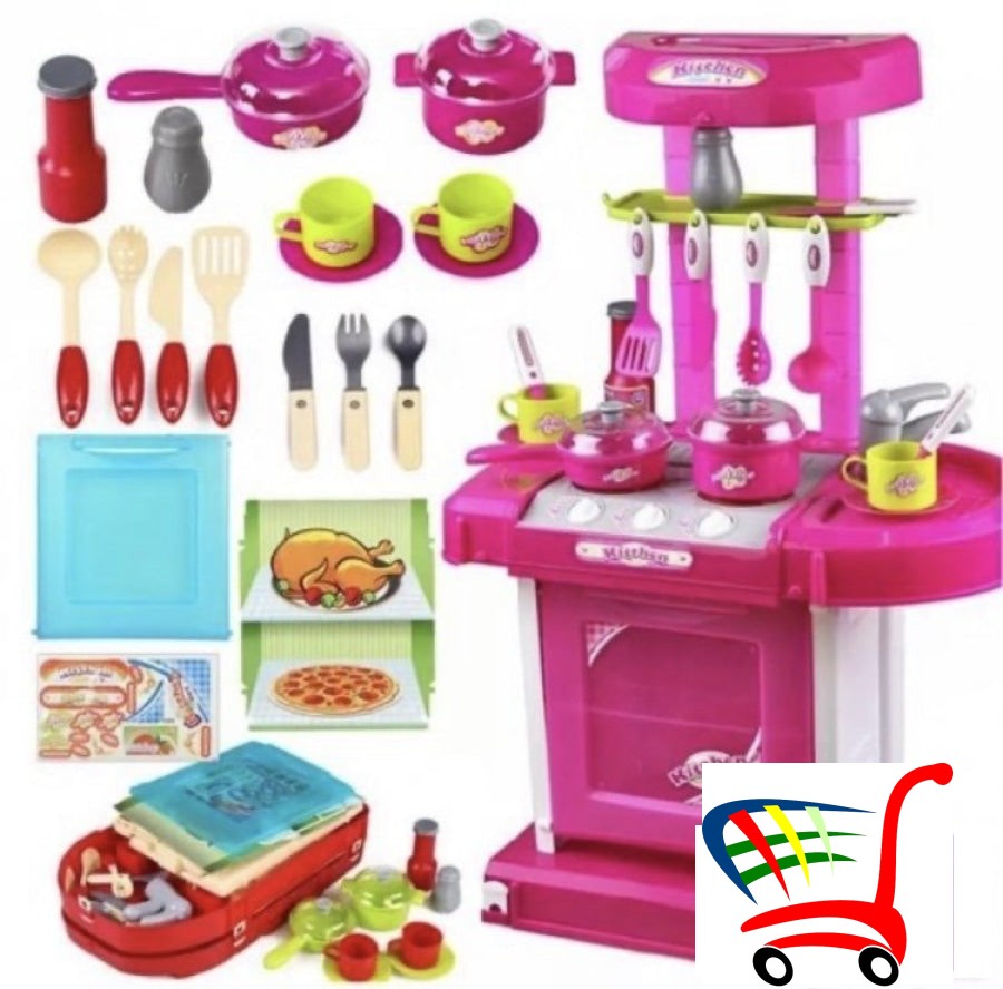 Kuhinja za malisane sa dodatnim elementima, savršena za decu koje vole da se igraju kuvanja. Obradujte Vase dete, probudite mastu u njemu, praktican set koji Vam nece zauzimati previse prostora u stanu jer poseduje svoj kofer.