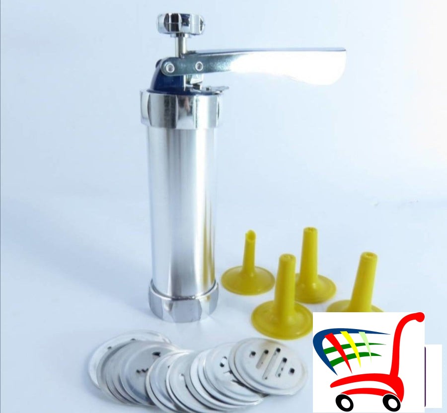 Jednostavan je za upotrebu i štedi vreme, nije potrebna struja. Treba samo da umetnete oblikovani disk, napunite pištolj testom, zategnete klip i dobićete savršene kolačiće.