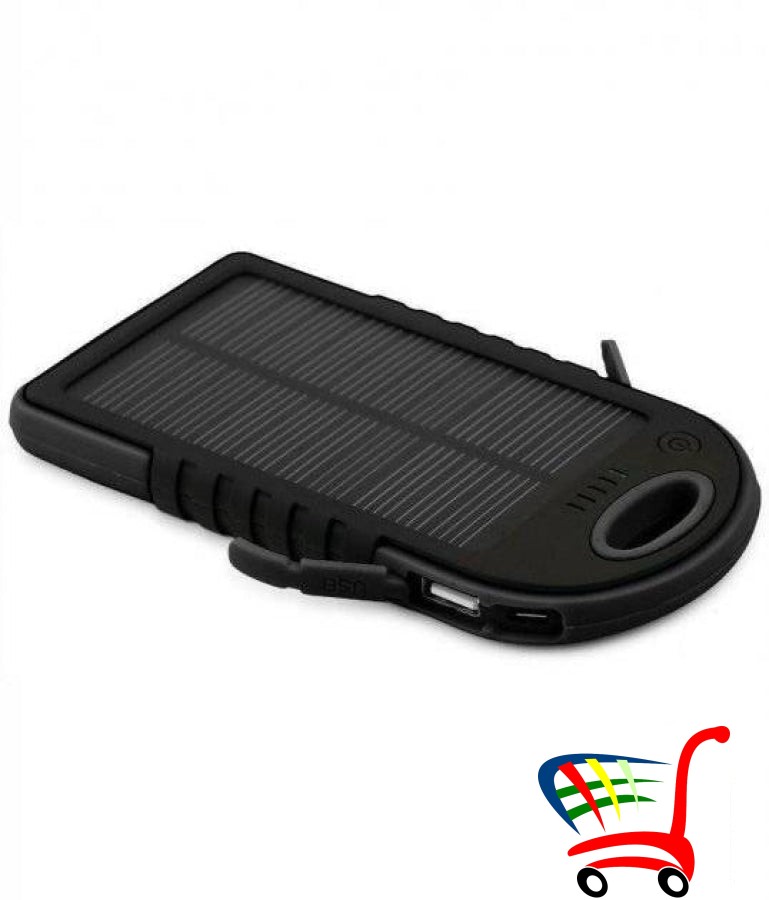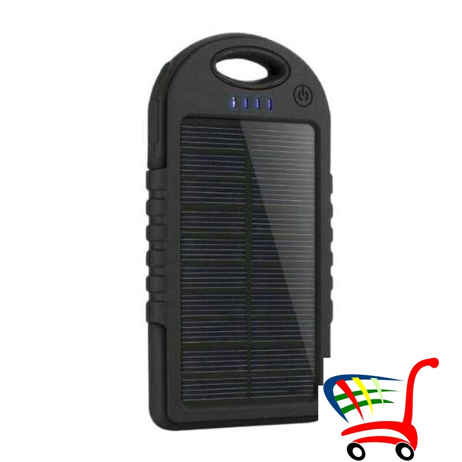 Eksterna baterija Solar Charger Power Bank, u crnom kućištu, je pouzdan i praktičan dodatak koji će vam omogućiti da održite dovoljan nivo napunjenosti bilo kog gadžeta (tableta, pametnog efona, pametnog sata, fitnes narukvice).