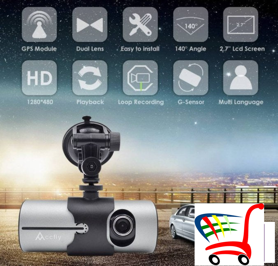 R300 DUPLA AUTO KAMERA + GPS Sistem Snima Napred/Nazad !