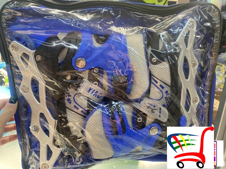 Roleri sa svetlecim silikonskim tockovima. Imaju svoju torbicu.