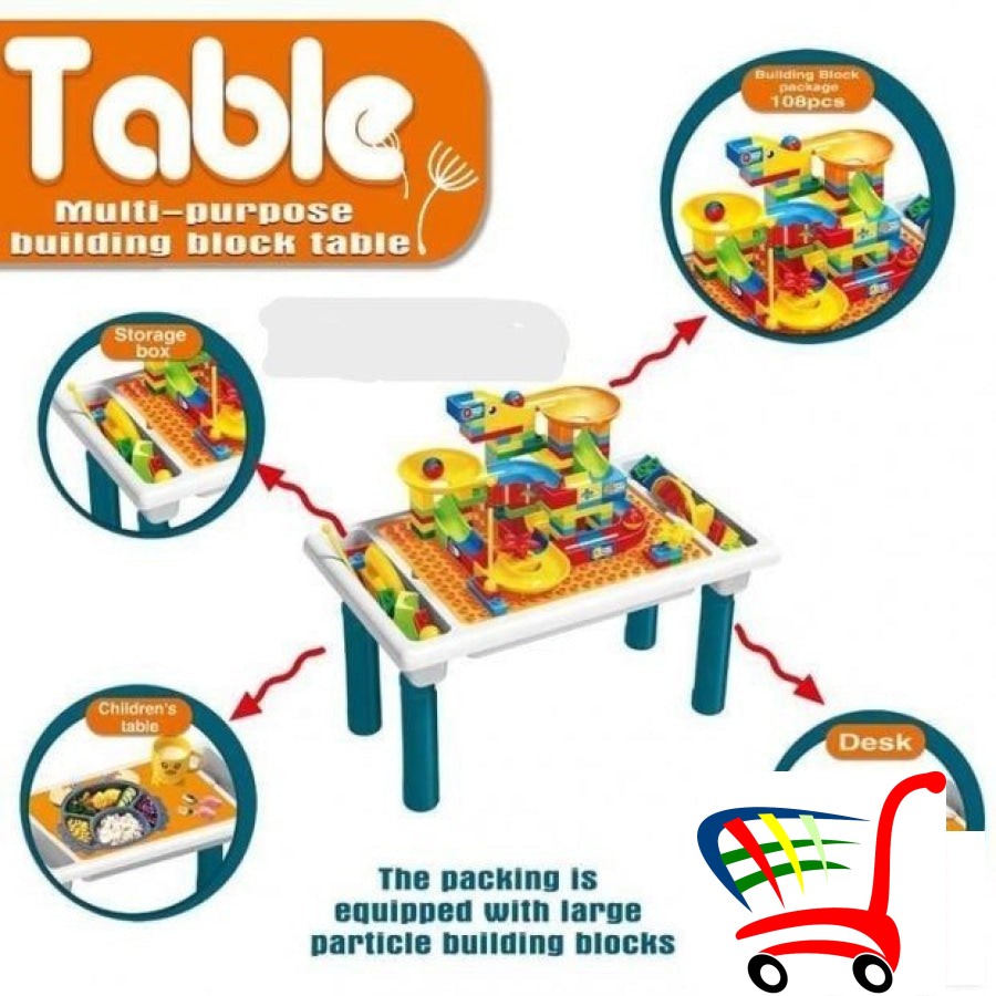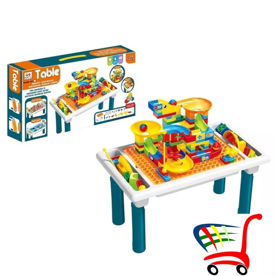 Ovaj multifunkcionalni sto sa kockama sadrži 114 delova sa kojima deca mogu da izgrade gotovo sve što mogu da zamisle direktno na stolu. Mogu se igrati satima i satima samostalno otkrivati, graditi i učiti, čineći vreme igre izazovnim i zanimljivim .