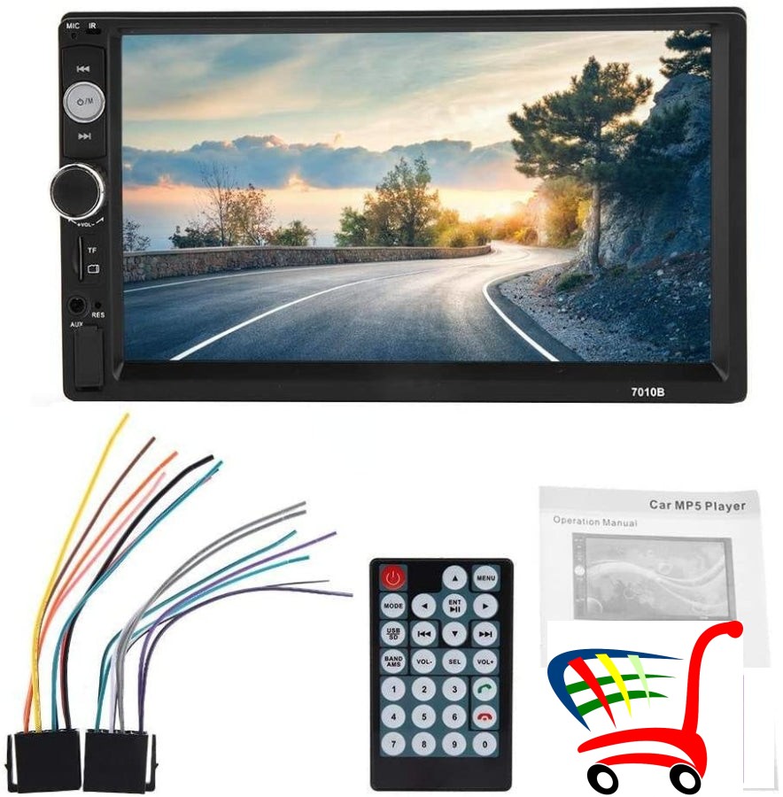 Podržava funkciju unazad za vožnju unazad automobilom, čini vožnju unazad bržom i sigurnijom (kamera nije uključena). Specifikacija: Stanje: 100% Potpuno Materijal: ABS + aluminijumska legura Boja: Crna Model: 7010B Rezolucija ekrana: 1024 * 600 Radio opseg: FM1, FM2, FM3 Čip dekodera: C500 Slika za vožnju unazad : Podržani čip pojačala snage: TDA7388Upravljanje na upravljaču: Podrška BT: Podržani radio čip: KN8035 Radio frekvencija: 87,5M-180M Utor za SD karticu: Mini TF kartica AUKS ulaz: Podrška Format slike: JPG Format zvuka: MP3 / VMAVAV / OGG / FL AC / APE Video format: RM / RMVB / MP4/MP5 / FL V / MKV / 3GP / AVI / ASF / SVFMP 1 / MP2 RCA terminal: 2 * video izlaz, 1 * reverzni ulaz, 2 * audio izlaz, 1 * video ulaz Jezici: engleski, kineski, francuski , Portugalski, španski Težina paketa: približno Lista paketa: 670g / 23,6oz : 1 * Auto MP5 Plaier 1 * Pover Line 1 * Daljinski upravljač 1 * Korisničko uputstvo.